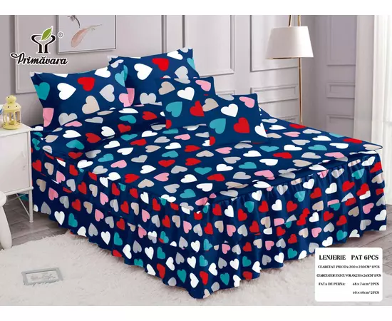 Cearceaful de pat are prins pe fiecare colt cate un elastic care vine prins sub saltea, pentru a nu permite alunecarea cearceafului de pe pat. Pe partea de jos a ceracefului de pat, aveti asezate superbele volanase, care ofera acestor modele eleganta si rafinament. Fetele de perna se inchid cu flep (petrecute). Mod ambalare: punga cu manere, fiind ideala pentru cadou.