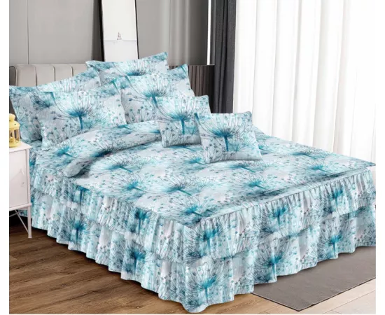 Lenjerie de Lux cu Volanase pentru pat dublu din Bumbac FINET satinat gros - 6 Piese!