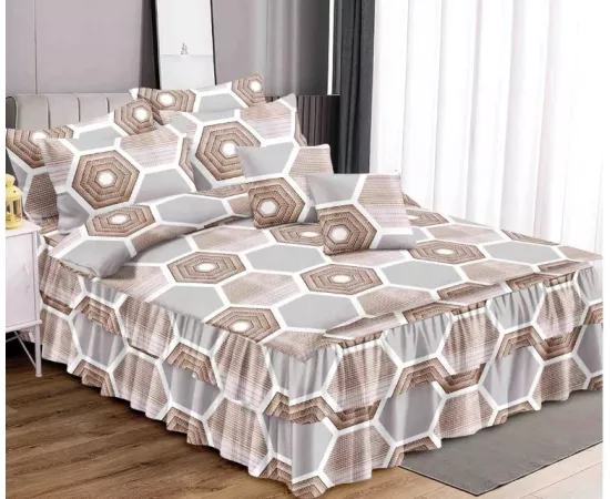 Lenjerie de Lux cu Volanase pentru pat dublu din Bumbac FINET satinat gros - 6 Piese!