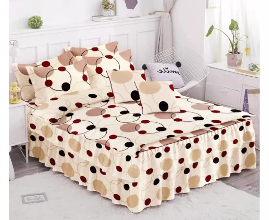 Lenjerie de Lux cu Volanase pentru pat dublu din Bumbac FINET satinat gros - 6 Piese!