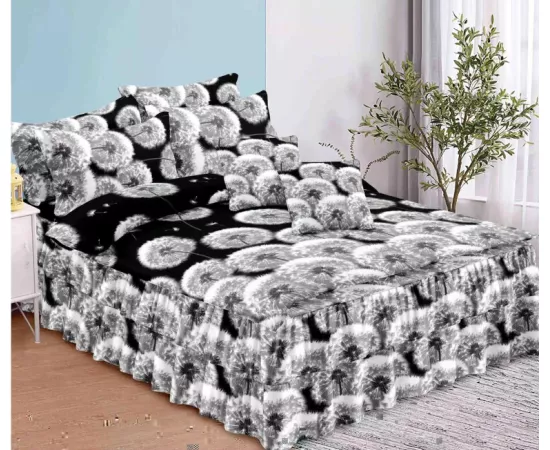 Lenjerie de Lux cu Volanase pentru pat dublu din Bumbac FINET satinat gros - 6 Piese!