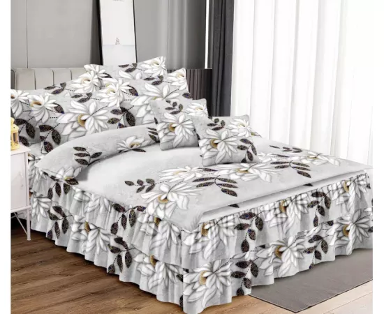 Lenjerie de Lux cu Volanase pentru pat dublu din Bumbac FINET satinat gros - 6 Piese!