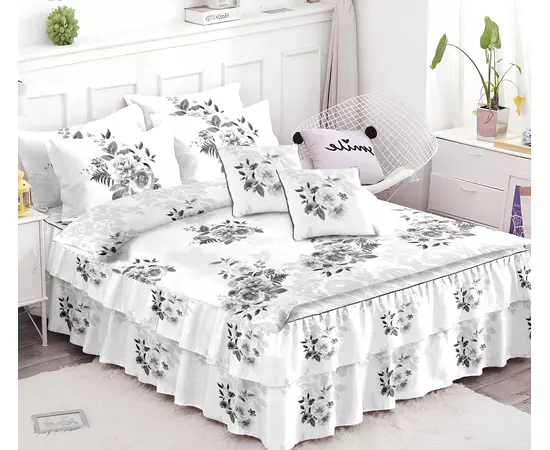 Lenjerie de Lux cu Volanase pentru pat dublu din Bumbac FINET satinat gros - 6 Piese!