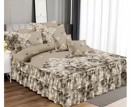 Lenjerie de Lux cu Volanase pentru pat dublu din Bumbac FINET satinat gros - 6 Piese!