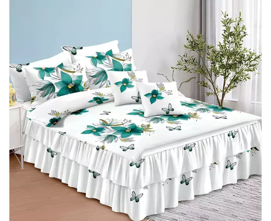 Lenjerie de Lux cu Volanase pentru pat dublu din Bumbac FINET satinat gros - 6 Piese!