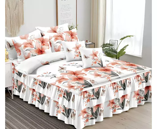 Lenjerie de Lux cu Volanase pentru pat dublu din Bumbac FINET satinat gros - 6 Piese!
