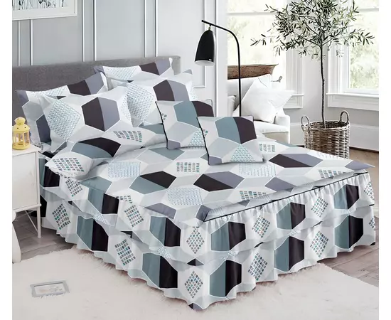 Lenjerie de Lux cu Volanase pentru pat dublu din Bumbac FINET satinat gros - 6 Piese!