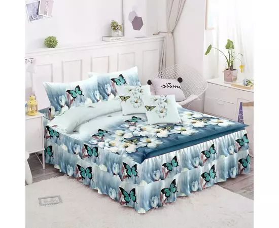Lenjerie de Lux cu Volanase pentru pat dublu din Bumbac FINET satinat gros - 6 Piese!
