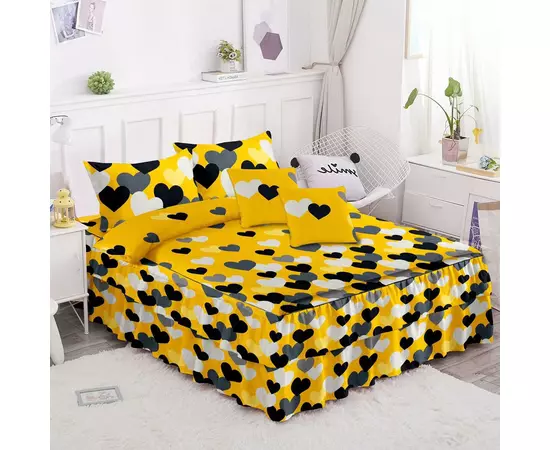 Lenjerie de Lux cu Volanase pentru pat dublu din Bumbac FINET satinat gros - 6 Piese!