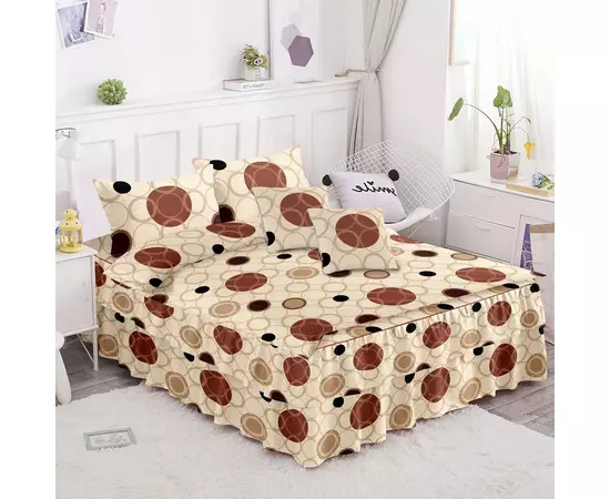 Lenjerie de Lux cu Volanase pentru pat dublu din Bumbac FINET satinat gros - 6 Piese!