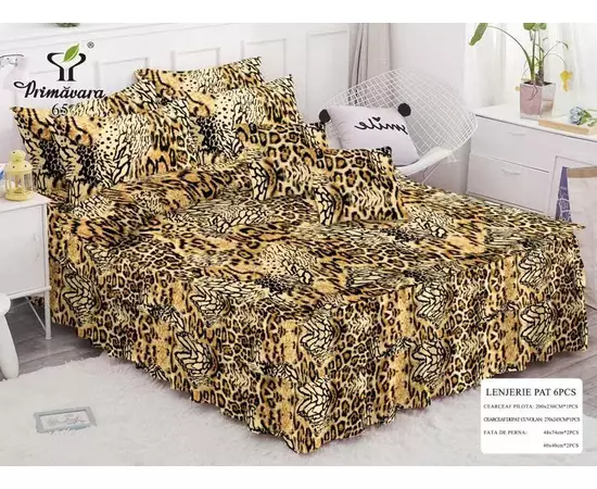 Cearceaful de pat are prins pe fiecare colt cate un elastic care vine prins sub saltea, pentru a nu permite alunecarea cearceafului de pe pat. Pe partea de jos a ceracefului de pat, aveti asezate superbele volanase, care ofera acestor modele eleganta si rafinament. Fetele de perna se inchid cu flep (petrecute). Mod ambalare: punga cu manere, fiind ideala pentru cadou.