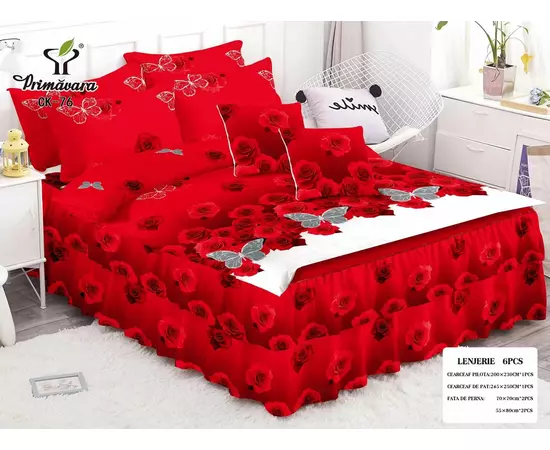 Pe partea de jos a ceracefului de pat, aveti asezate superbele volanase, care ofera acestor modele eleganta si rafinament.