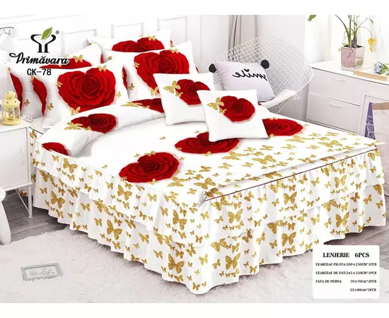 Pe partea de jos a ceracefului de pat, aveti asezate superbele volanase, care ofera acestor modele eleganta si rafinament.