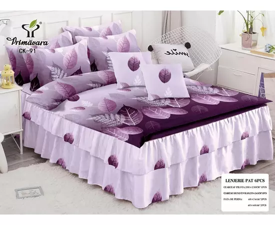 Cearceaful de pat are prins pe fiecare colt cate un elastic care vine prins sub saltea, pentru a nu permite alunecarea cearceafului de pe pat. Pe partea de jos a ceracefului de pat, aveti asezate superbele volanase, care ofera acestor modele eleganta si rafinament. Fetele de perna se inchid cu flep (petrecute). Mod ambalare: punga cu manere, fiind ideala pentru cadou.