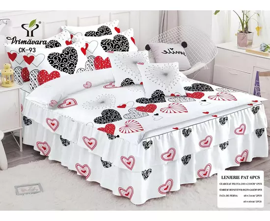 Cearceaful de pat are prins pe fiecare colt cate un elastic care vine prins sub saltea, pentru a nu permite alunecarea cearceafului de pe pat. Pe partea de jos a ceracefului de pat, aveti asezate superbele volanase, care ofera acestor modele eleganta si rafinament. Fetele de perna se inchid cu flep (petrecute). Mod ambalare: punga cu manere, fiind ideala pentru cadou.