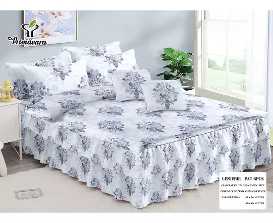 Cearceaful de pat are prins pe fiecare colt cate un elastic care vine prins sub saltea, pentru a nu permite alunecarea cearceafului de pe pat. Pe partea de jos a ceracefului de pat, aveti asezate superbele volanase, care ofera acestor modele eleganta si rafinament. Fetele de perna se inchid cu flep (petrecute). Mod ambalare: punga cu manere, fiind ideala pentru cadou.