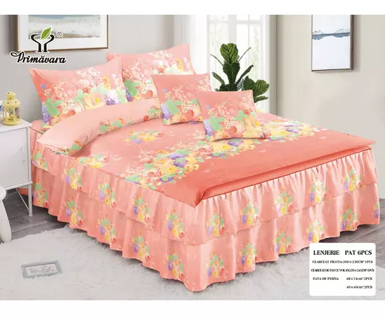 Cearceaful de pat are prins pe fiecare colt cate un elastic care vine prins sub saltea, pentru a nu permite alunecarea cearceafului de pe pat. Pe partea de jos a ceracefului de pat, aveti asezate superbele volanase, care ofera acestor modele eleganta si rafinament. Fetele de perna se inchid cu flep (petrecute). Mod ambalare: punga cu manere, fiind ideala pentru cadou.