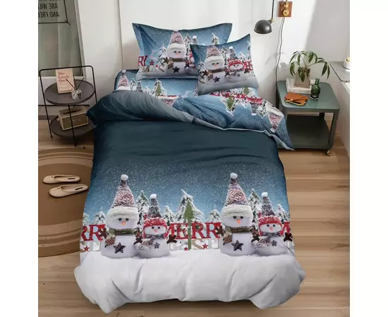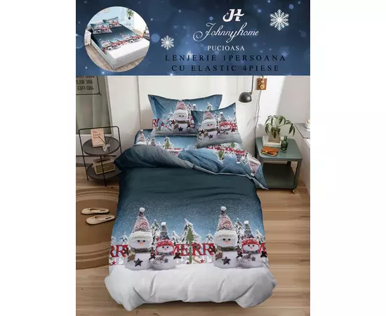 Lenjerie de Pat 1 PERSOANA, Bumbac 100% Finet, 4 PIESE - CRACIUN- SIPRQ1-05