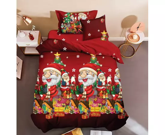 Lenjerie de Pat, Bumbac 100% Finet, 4 piese cu elastic Mos Craciun-