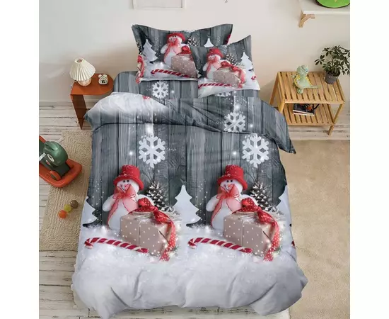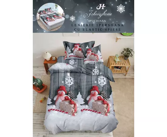 Lenjerie de Pat 1 PERSOANA, Bumbac 100% Finet, 4 PIESE - CRACIUN- SIPRQ1-07