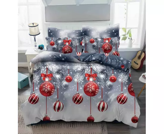Lenjerie de Pat 1 Persoana, Bumbac Finet, 4 Piese, Gri cu Globuri - JO587