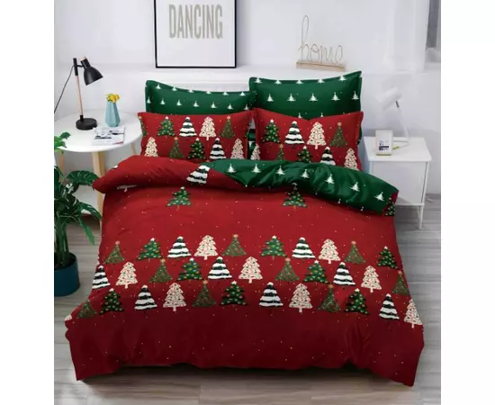 Lenjerie de Pat 1 Persoana, Bumbac Finet, 4 Piese, Rosu cu Braduti - JO586