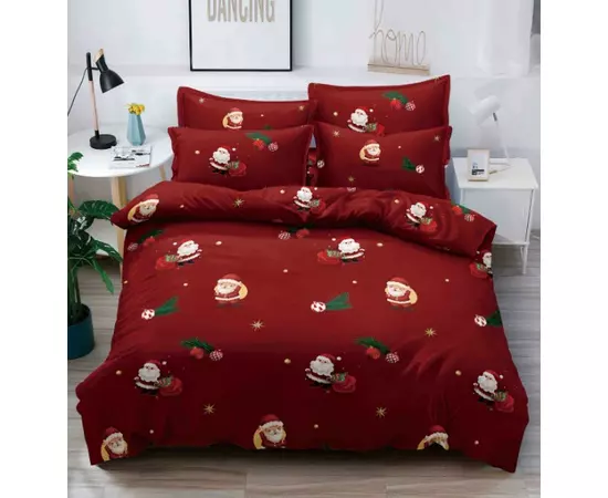 Lenjerie de Pat 1 Persoana, Bumbac Finet, 4 Piese, Rosu cu Mos Craciun - JO597