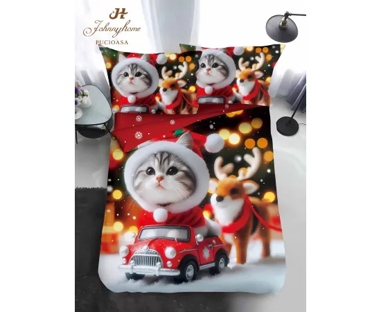 Lenjerie de pat 1 Persoana - Model de Craciun - SPR404009
