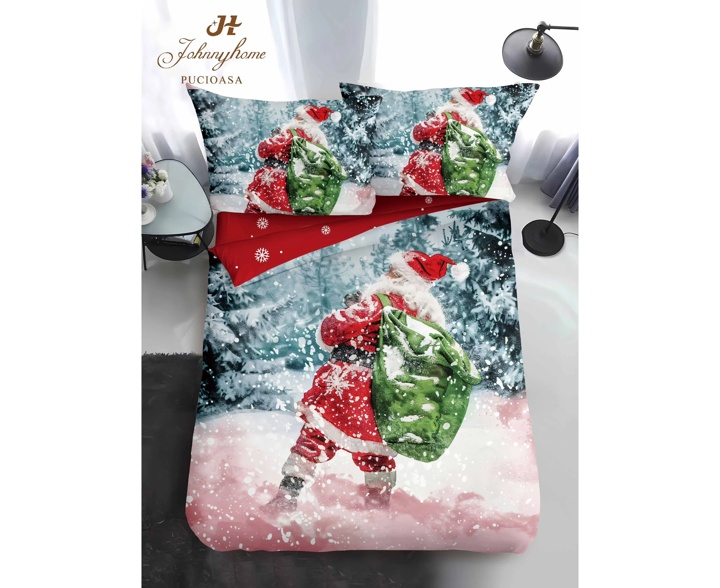 Lenjerie de pat Finet 1 Persoana cu Elastic,Mos Craciun este obtinut din bumbac finet tratat intr-un anumit mod care face ca tesatura sa fie moale, supla si rezistenta in timp ,astfel lenjeria de pat va arata ca noua mult timp.Imprimeul acestei lenjerii de pat este modern aducand o eleganta aparte dormitorului tau.Acesta lenjerie de pat din finet este ideapa pentru a fi oferita cadou celor dragi.