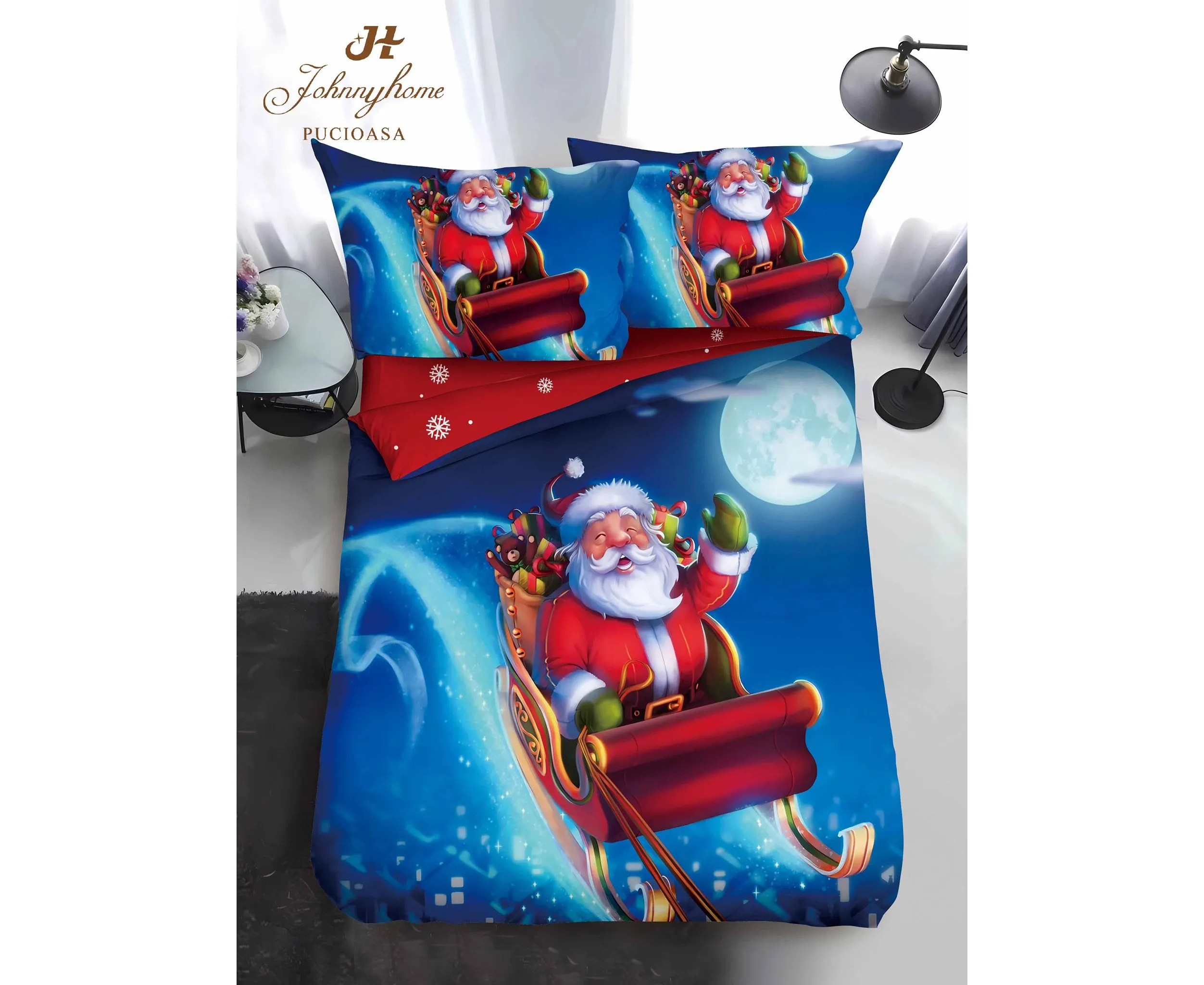 Lenjerie de pat Finet 1 Persoana cu Elastic,Mos Craciun este obtinut din bumbac finet tratat intr-un anumit mod care face ca tesatura sa fie moale, supla si rezistenta in timp ,astfel lenjeria de pat va arata ca noua mult timp.Imprimeul acestei lenjerii de pat este modern aducand o eleganta aparte dormitorului tau.Acesta lenjerie de pat din finet este ideapa pentru a fi oferita cadou celor dragi.