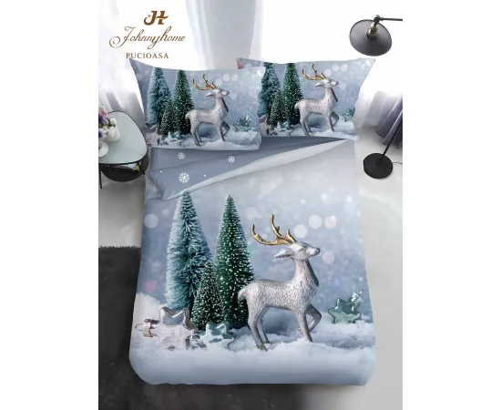 Lenjerie de pat 1 Persoana - Model de Craciun - SPR404018