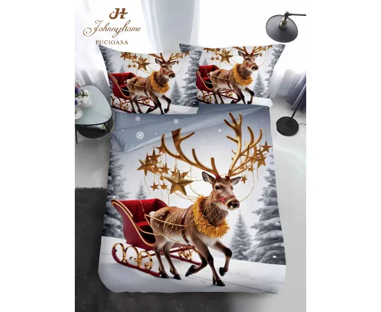 Lenjerie de pat 1 Persoana - Model de Craciun - SPR404019