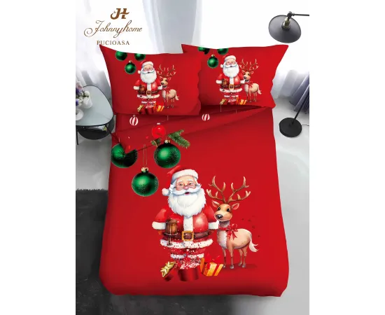 Lenjerie de pat 1 Persoana - Model de Craciun - SPR404020