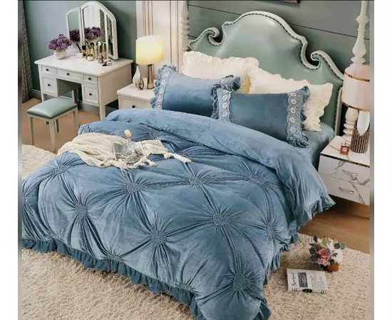 Lenjerie de pat din catifea, moale si catifelata, cromatica si design elegant, potrivit pentru orice tip de dormitor.