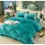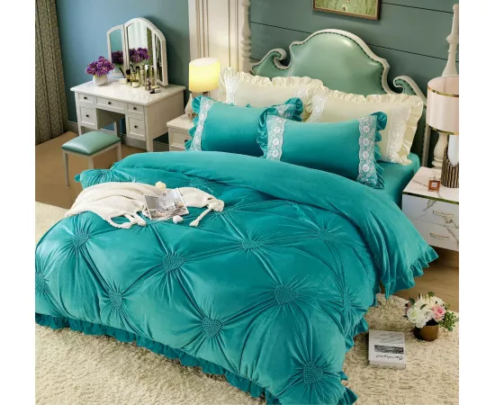 Lenjerie de Pat, din Catifea cu Broderie pentru Pat Dublu, 4 Piese, Turcoaz - JOJ192