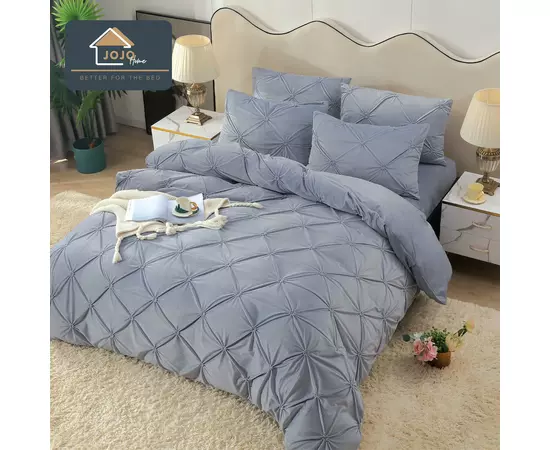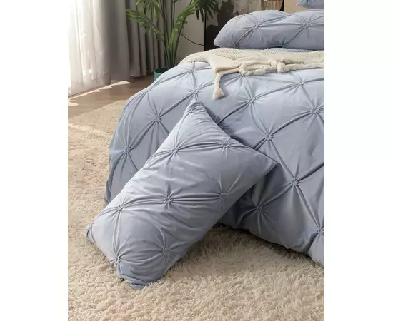 Lenjerie de Pat, din Catifea cu Broderie pentru Pat Dublu, 4 Piese, Gri Albastrui - JO920