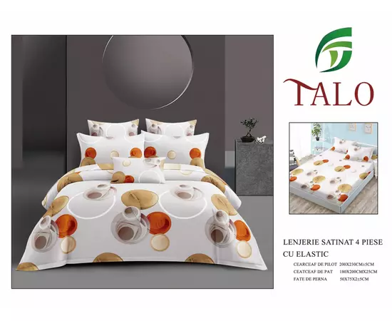 Lenjerie pentru pat dublu de 2 persoane, confectionata din bumbac satinat.