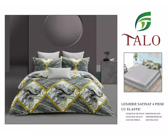 Lenjerie de Pat cu elastic 4 piese pat dublu, Bumbac Satinat - LIM91