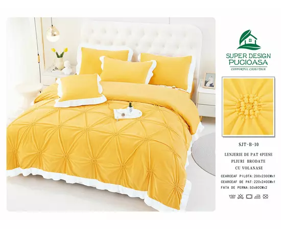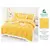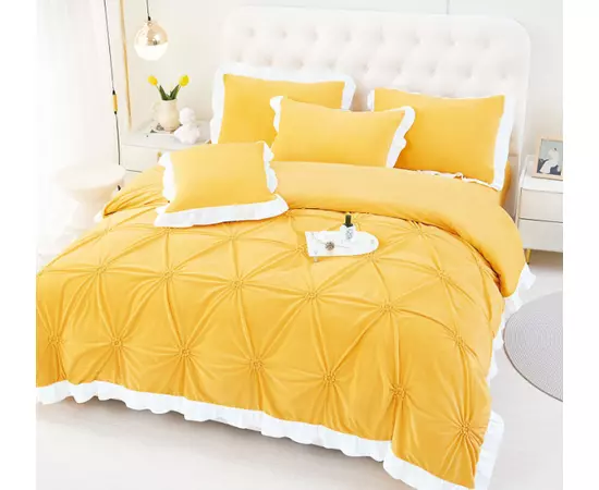 Lenjerie de Pat din Catifea, pentru Pat Dublu, 4 Piese, Galben cu Margine Alba - FR145
