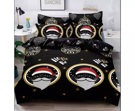 Lenjerie de Pat Bumbac Finet cu Elastic, Mos Craciun Negru - JO588