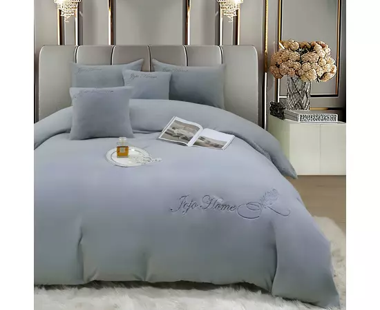 Lenjerie de Pat Brodate , Cearceaf cu Elastic, 6 Piese, Blană de Iepure Artificială cu Fir Scurt, Gri Deschis - JOJ638