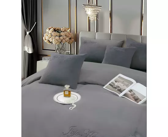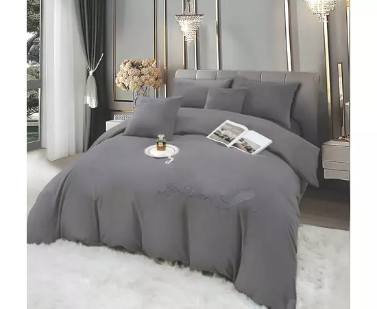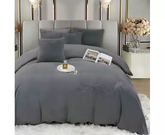 Lenjerie de Pat Brodate , Cearceaf cu Elastic, 6 Piese, Blană de Iepure Artificială cu Fir Scurt, Gri Inchis - JOJ634