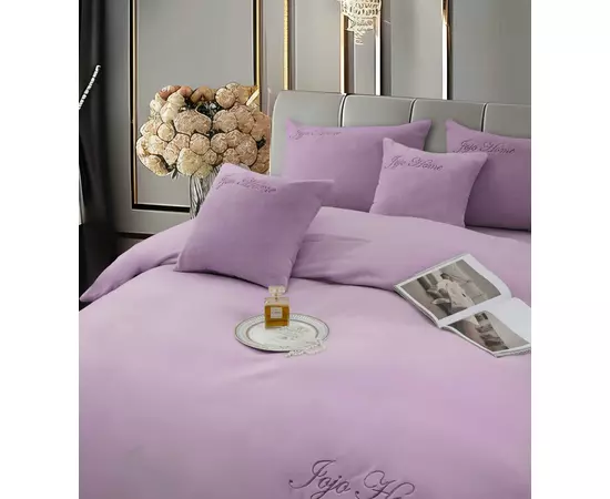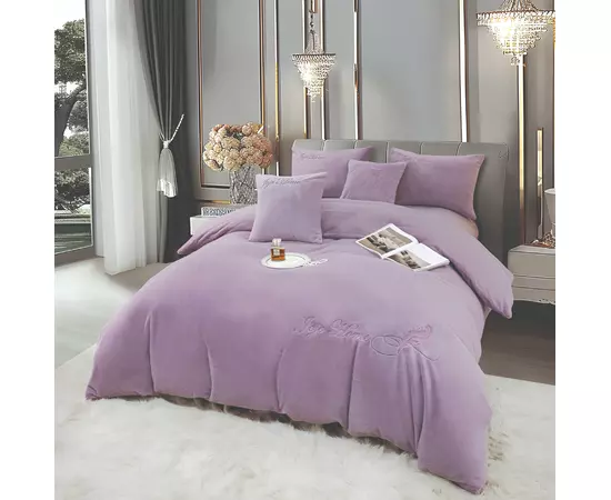 Lenjerie de Pat Brodate , Cearceaf cu Elastic, 6 Piese, Blană de Iepure Artificială cu Fir Scurt, Mov - JOJ641