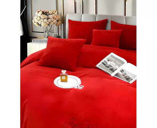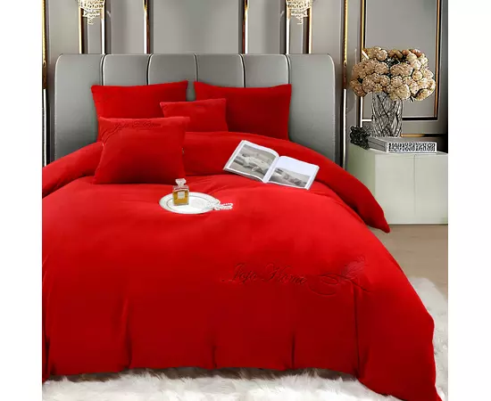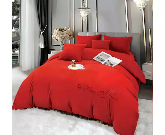 Lenjerie de Pat Brodate , Cearceaf cu Elastic, 6 Piese, Blană de Iepure Artificială cu Fir Scurt, Rosu - JOJ635