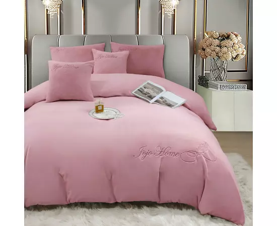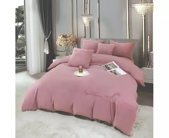 Lenjerie de Pat Brodate , Cearceaf cu Elastic, 6 Piese, Blană de Iepure Artificială cu Fir Scurt, Roz Inchis Pudra - JOJ640