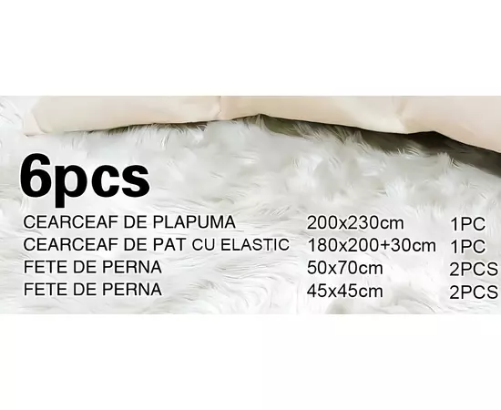 Lenjerie de Pat Brodate , Cearceaf cu Elastic, 6 Piese, Blană de Iepure Artificială cu Fir Scurt