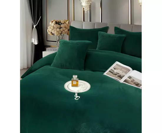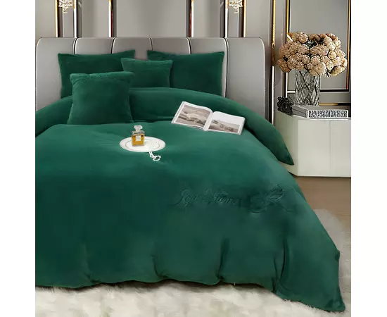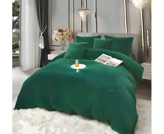 Lenjerie de Pat Brodate , Cearceaf cu Elastic, 6 Piese, Blană de Iepure Artificială cu Fir Scurt, Verde - JOJ636