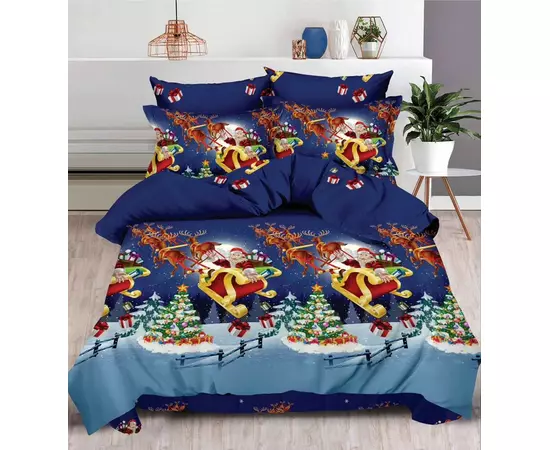 Lenjerie de Pat, Bumbac 100% Finet, 6 piese cu elastic MOS CRACIUN CU RENI SI SANIE - SIRQT-12
