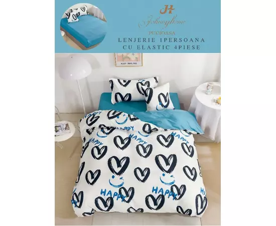 Lenjerie de Pat Bumbac Finet, 1 persoana , cearsaf cu elastic - SIPRT60-83
