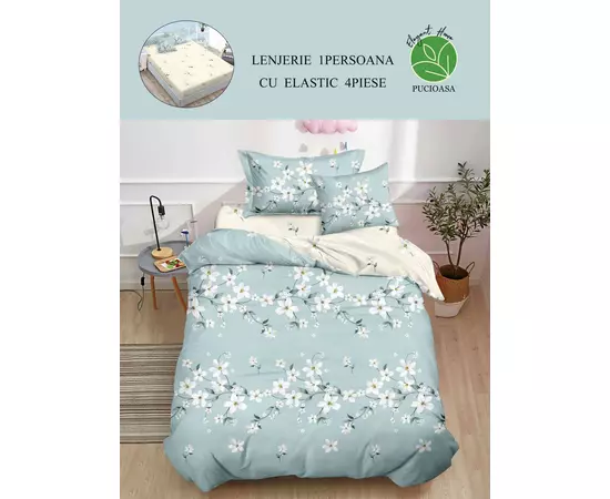 Lenjerie de Pat Bumbac Finet, 1 persoana , cearsaf cu elastic - SIPRT60-44